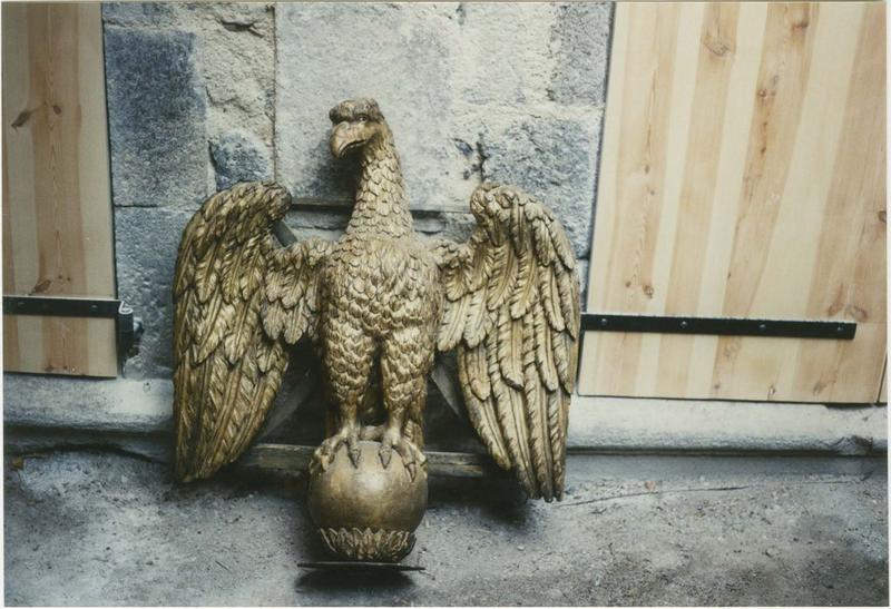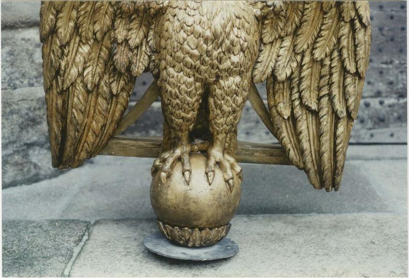 Aigle sur un globe, les ailes ouvertes supportant un pupitre.