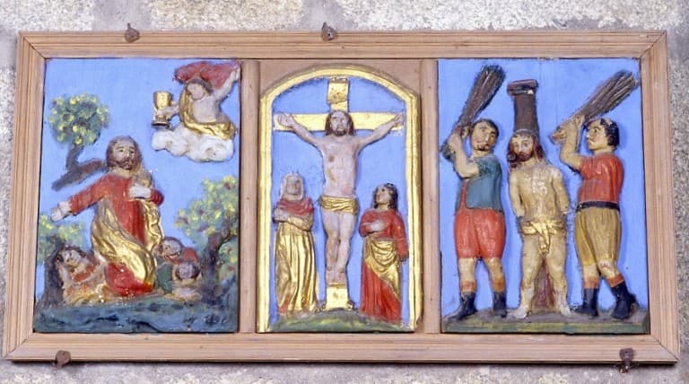 7 bas-reliefs (éléments de tabernacle) : scènes de la Passion, scènes de la vie de la Vierge