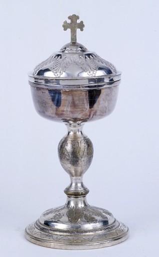 Arrêté : ciboire, argent et métal argenté, Limoges, poinçon de maître non identifié, 1819-1838, Marval-Milhaguet, église paroissiale Saint-Amand.