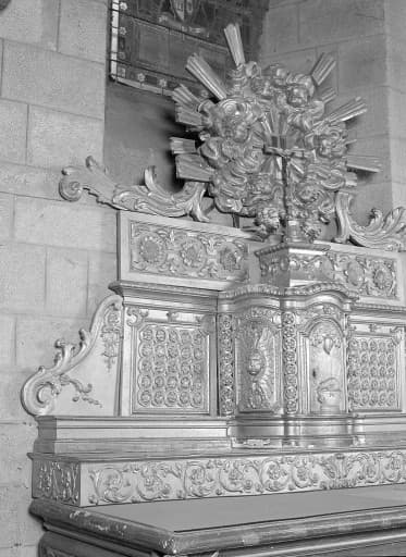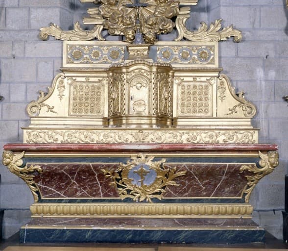 POP | Plateforme ouverte du patrimoineautel de la chapelle du transept sud : autel tombeau, gradin d'autel, tabernacle à ailes et exposition