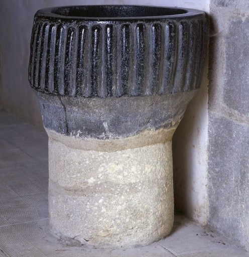 Cuve de bénitier en serpentine datable du Moyen Age.