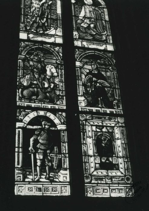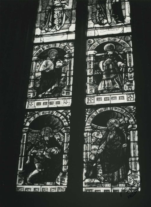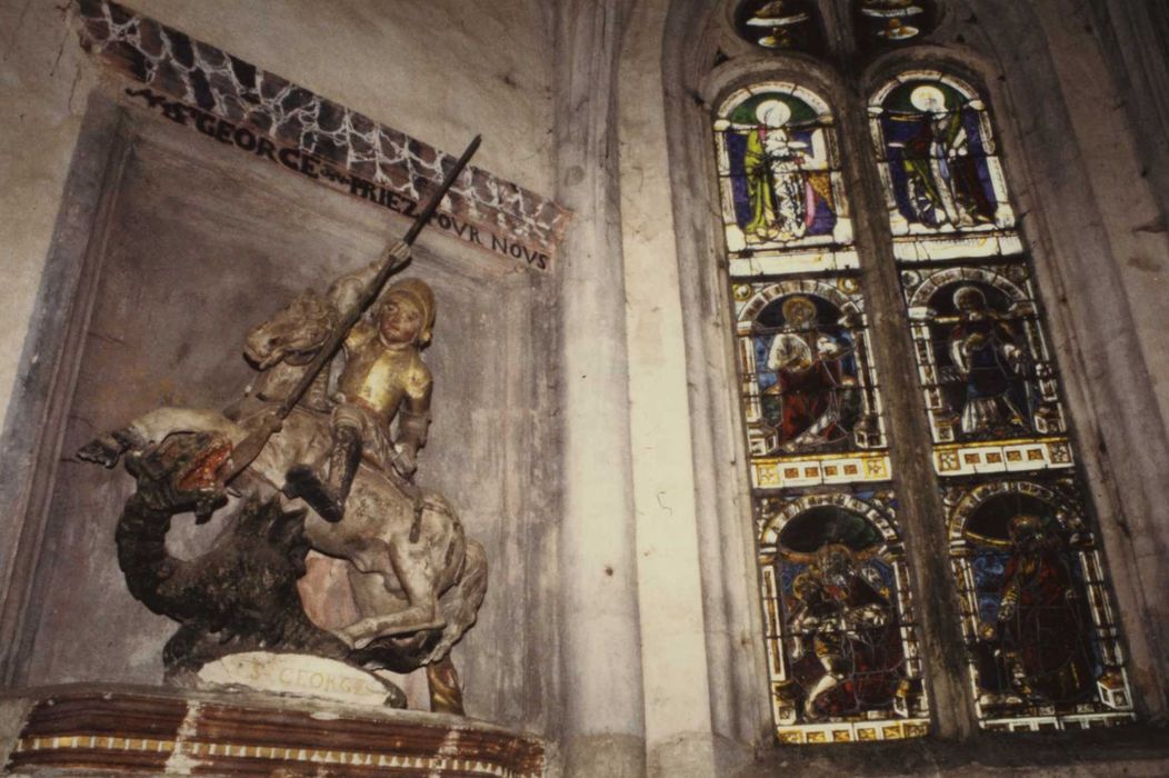 POP | Plateforme ouverte du patrimoineverrières : la Trinité, Saint Georges terrassant le dragon, Saint Jean, Saint Paul, Saint Louis ?, Sainte Catherine, Un chevalier armé, Un orant, Saint Joseph, Saint Dié, B.P. Fourier