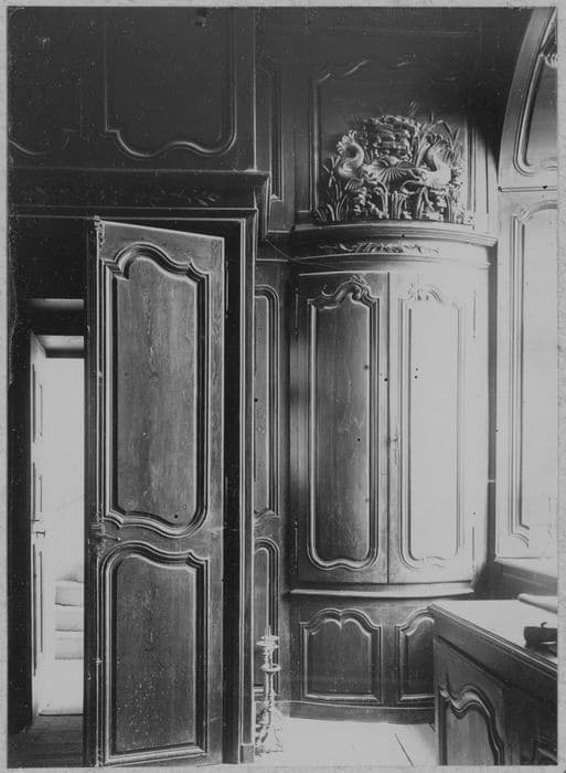 La sacristie est complètement recouverte de boiseries formant armoires, les montants et traverses sont décorés d'ornements.