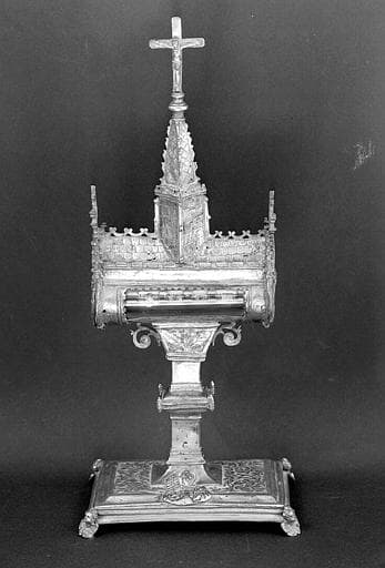 Pédicule à cylindre horizontal en cristal monté dans une enveloppe en cuivre doré.
