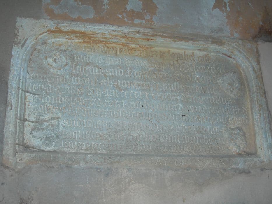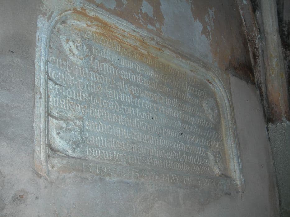 plaque funéraire de Guy de Mazeroy, seigneur de Mazirot mort en 1431 et de Gillette de Mazeroy, sa fille morte en 1519