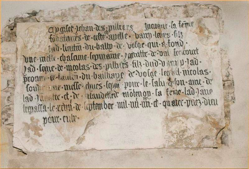 plaque commémorative de fondation d'une messe de requiem