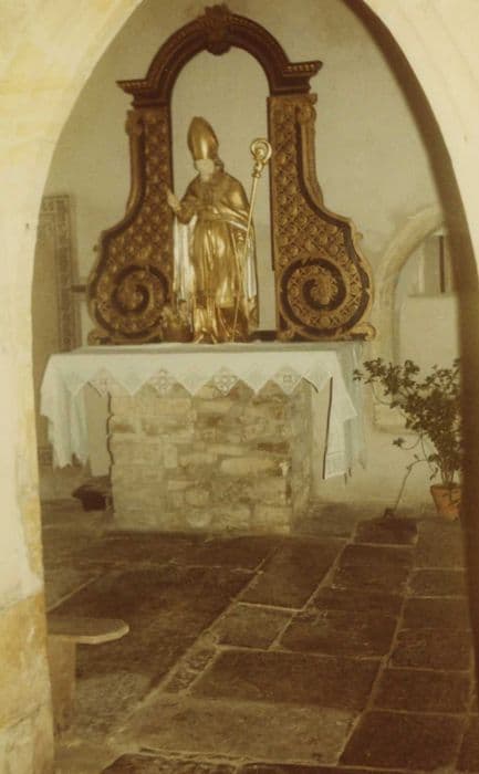 Ce qu'il reste du retable est comme grillagé et contribue à la présentation de la statue.