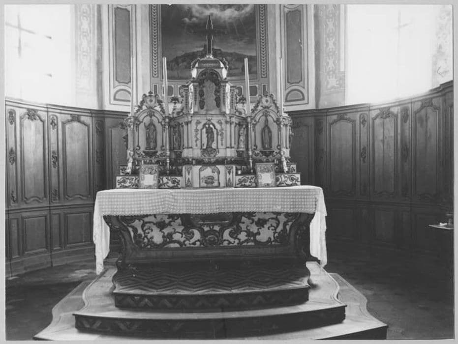 POP | Plateforme ouverte du patrimoinemaître-autel, tabernacle, retable, exposition, 5 statuettes : Saint Norbert, Evêque mitré bénissant, le Bon Pasteur, Saint Antoine de Padoue, Saint Augustin, antependium, degré d'autel (emmarchement)