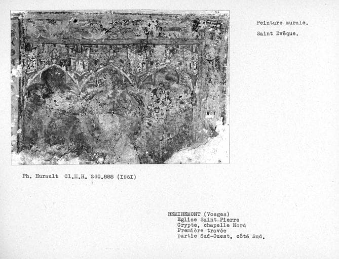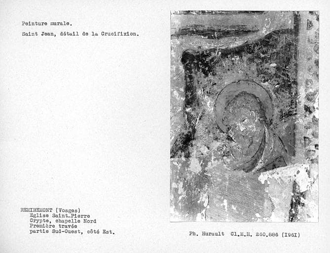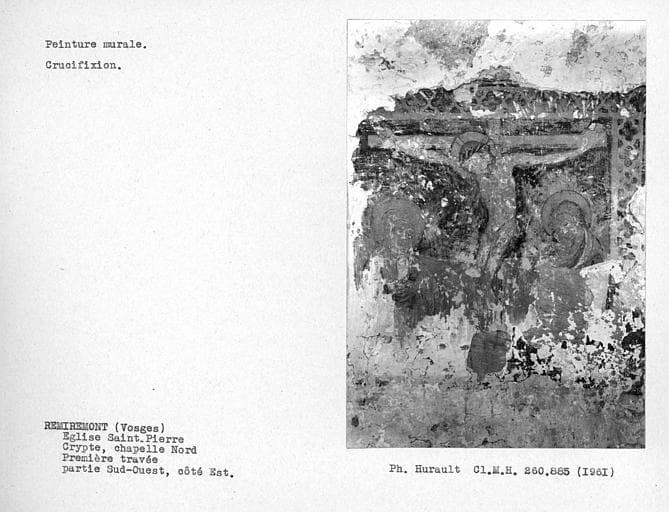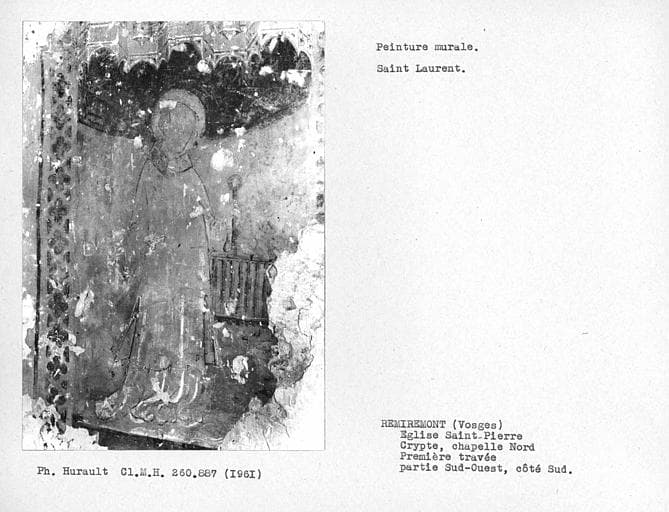 POP | Plateforme ouverte du patrimoine3 peintures monumentales : Christ en croix entre la Vierge et saint Jean, Saint Laurent et son gril, Evêque en dalmatique et chape
