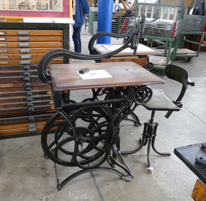 Machine à découper les pochoirs (scie sauteuse à pédales).