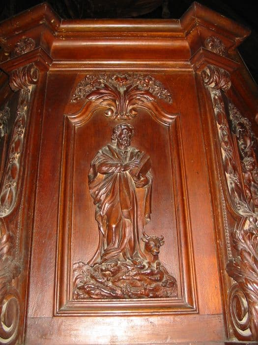 h = 7 m ; cuve h = 145 ; d = 120. Panneaux sculptés : h = 86 ; la = 48