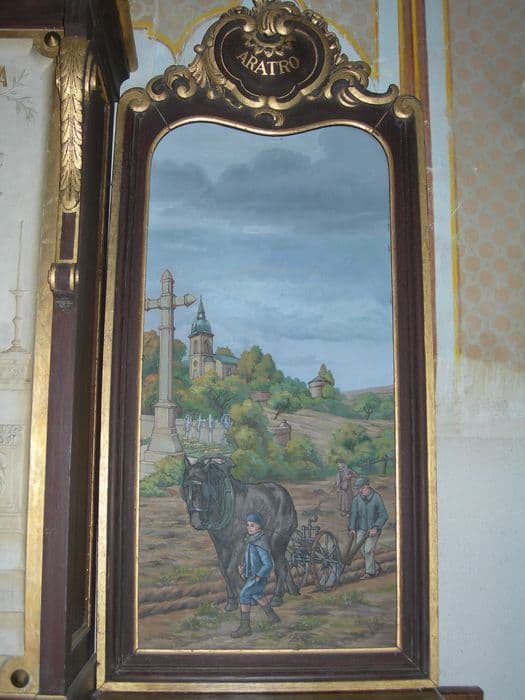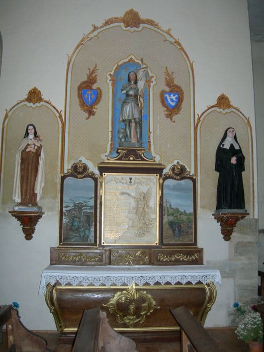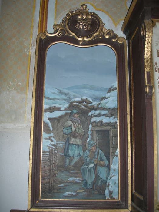 POP | Plateforme ouverte du patrimoineautel de Sainte-Jeanne d'Arc, deux tableaux : Scène de tranchée sous la neige et Vie agricole à Beaufremont et monument aux morts
