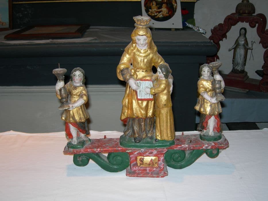 ensemble de quatre statuettes de confrérie : Saint Julien, Sainte Philomène, Sainte Anne et la Vierge, Saint Nicolas
