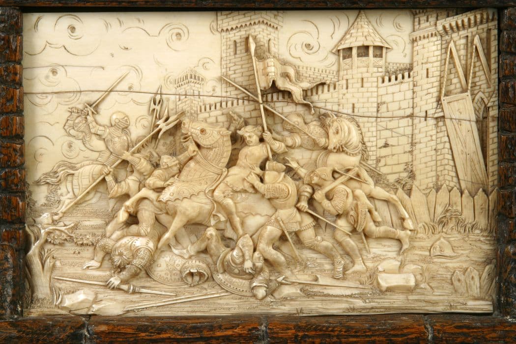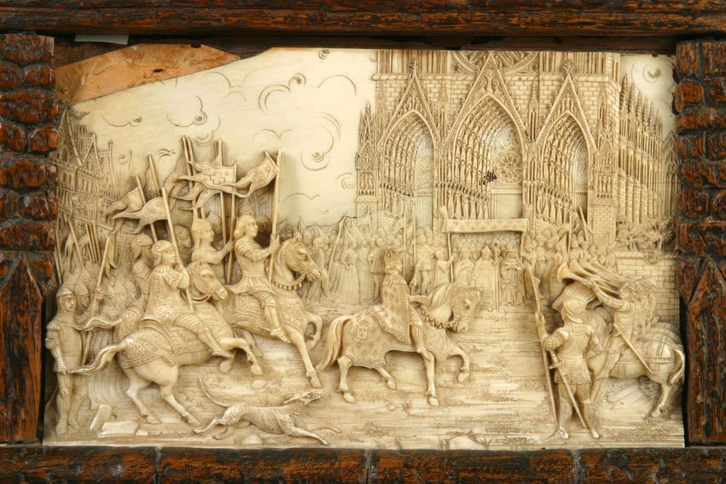 POP | Plateforme ouverte du patrimoinedeux bas-reliefs : Arrivée du dauphin Charles et de Jeanne d'Arc à Reims pour le couronnement, L'Arrestation de Jeanne d'Arc à Compiègne