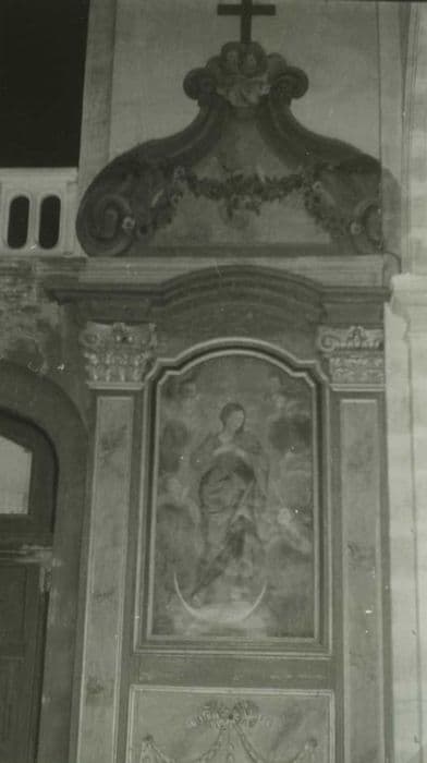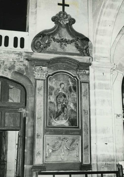 bois : taillé, peint (polychrome, faux marbre) ; toile (support) : peint