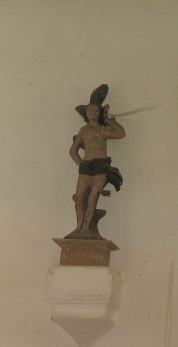 deux statuettes de bâtons de confrérie : Saint Roch, Saint Sébastien