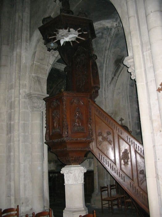 Chaire à prêcher avec cuve ornée de panneaux sculptés.