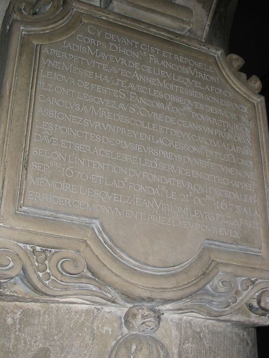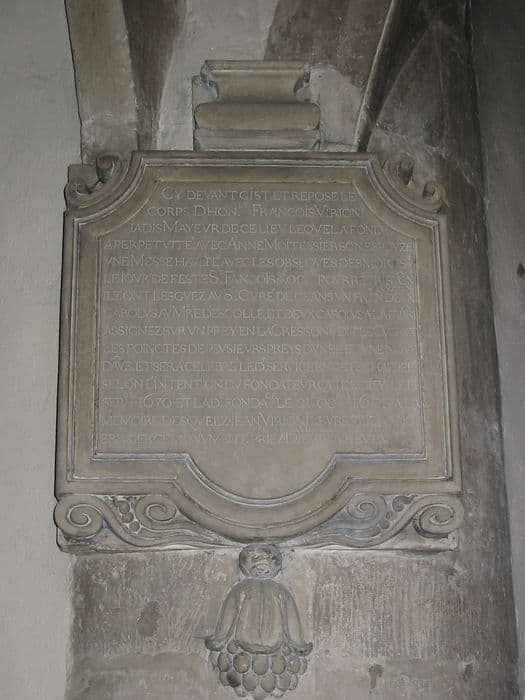 plaque commémorative de la fondation d'une messe des morts