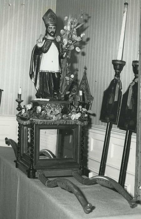 statue de confrérie : Saint Guérin et deux bâtons de procession (bâtons de céroféraires)