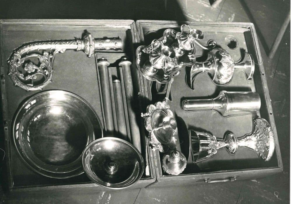 Les différents objets de cette chapelle épiscopale sont contenus dans un coffet en bois et comprennent : un calice et une patène, un flacon, une ampoule et le plateau du Saint Chrème, deux lunettes et leur plateau, une aiguière et son plateau, un chandelier à manche, une crosse. La plupart des pièces sont d'inspiration néo-gothique.