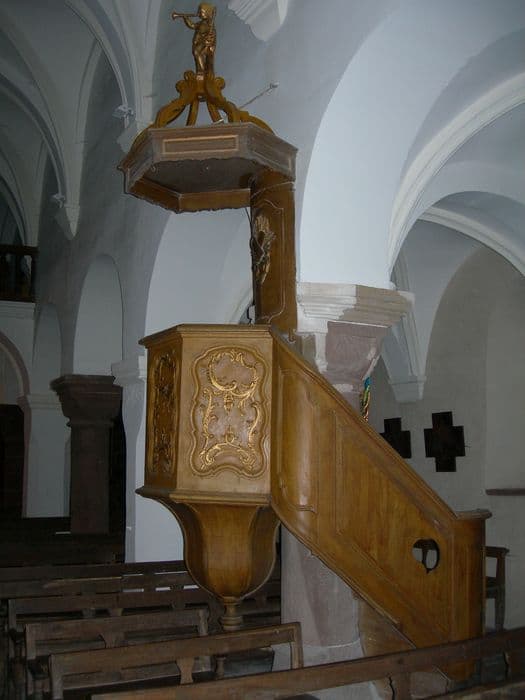 chaire à prêcher ; confessionnal ; armoire de sacristie