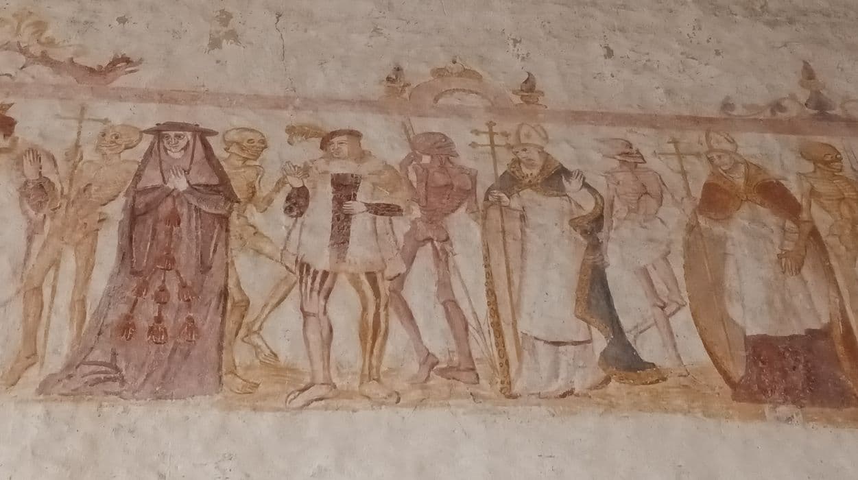 peintures monumentales : Danse macabre, Dit des trois morts et des trois vifs, L'Annonciation, Saint Michel