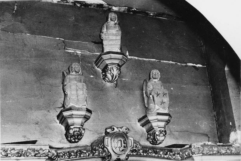 groupe sculpté : Trois angelots porteurs d'écussons