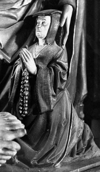 groupe sculpté : La Vierge de Pitié avec la Madeleine, des donateurs et leurs saints patrons