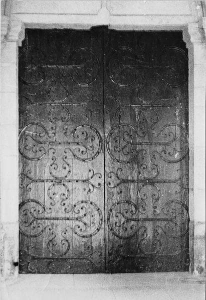 Dans les ventaux de la porte ouest de l'église.