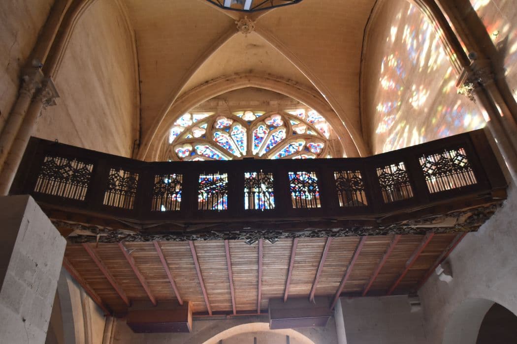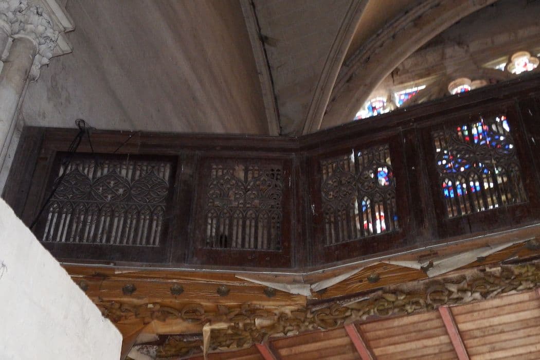 Panneaux formant garde corps de la tribune. Série de panneaux sculptés décorés de fenestrages flamboyants ajourés.