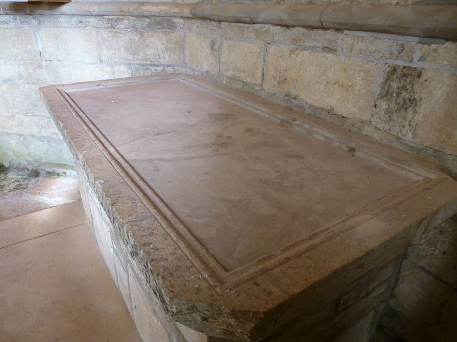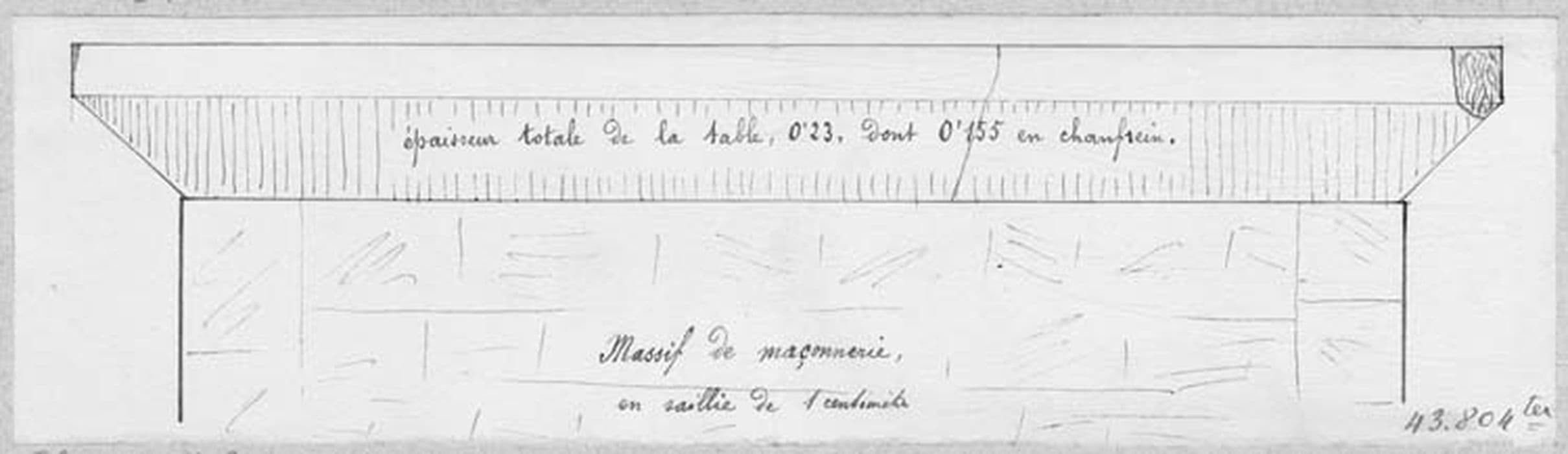 Autel formé d'un massif de maçonnerie recouvert d'une épaisse dalle débordant le massif et s'y raccordant par un chanfrein. Cette table est creusée à sa partie supérieure et encadrée d'une belle bordure moulurée.
