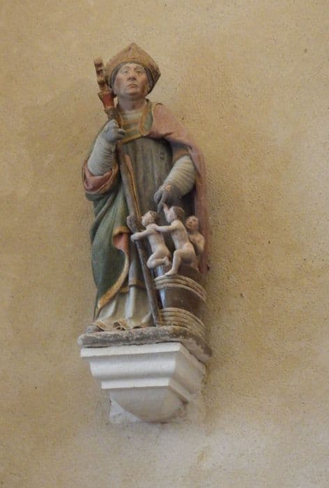 Statue de saint Nicolas avec les enfants.