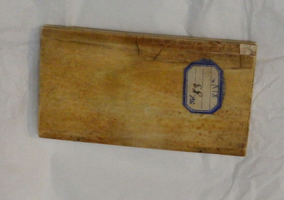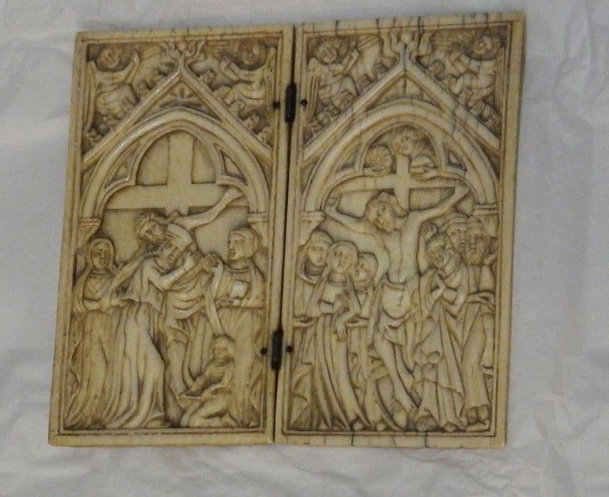 Inv. 53. Ivoire : diptyque composé de deux volets réunis par une charnière en acier.