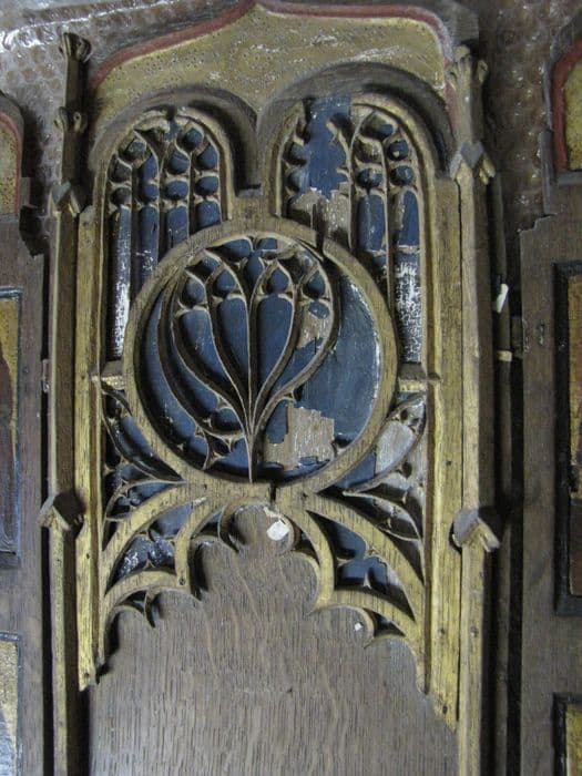 polyptique : L'Annonciation, La Visitation, La Nativité, La Présentation au Temple, L'Adoration des Mages, Le Massacre des Innocents, Saint Pierre
