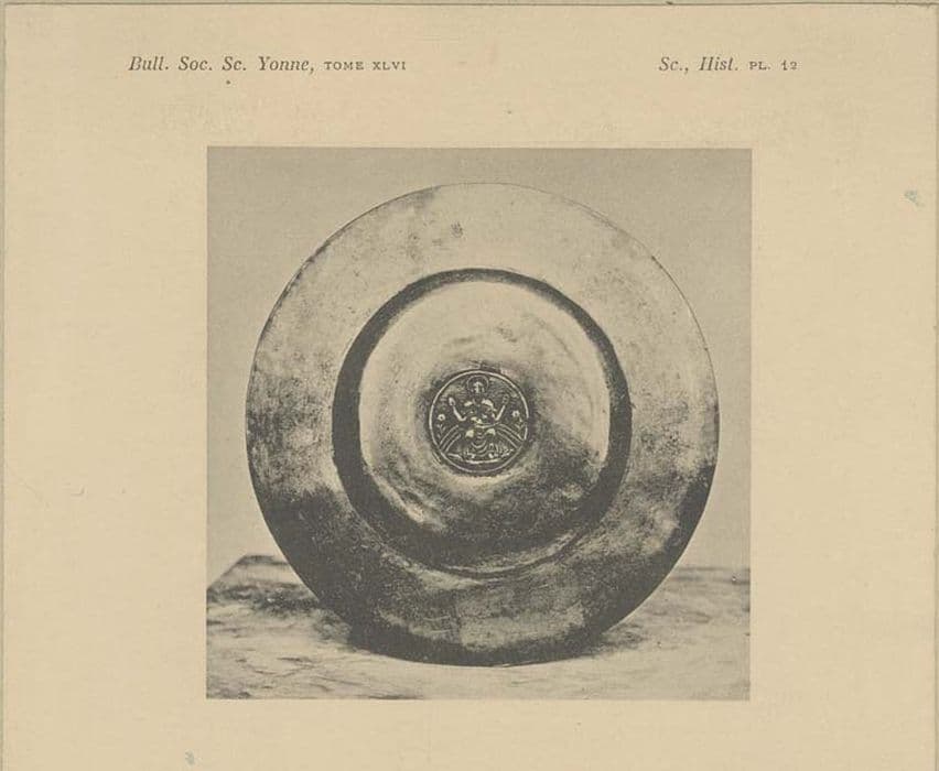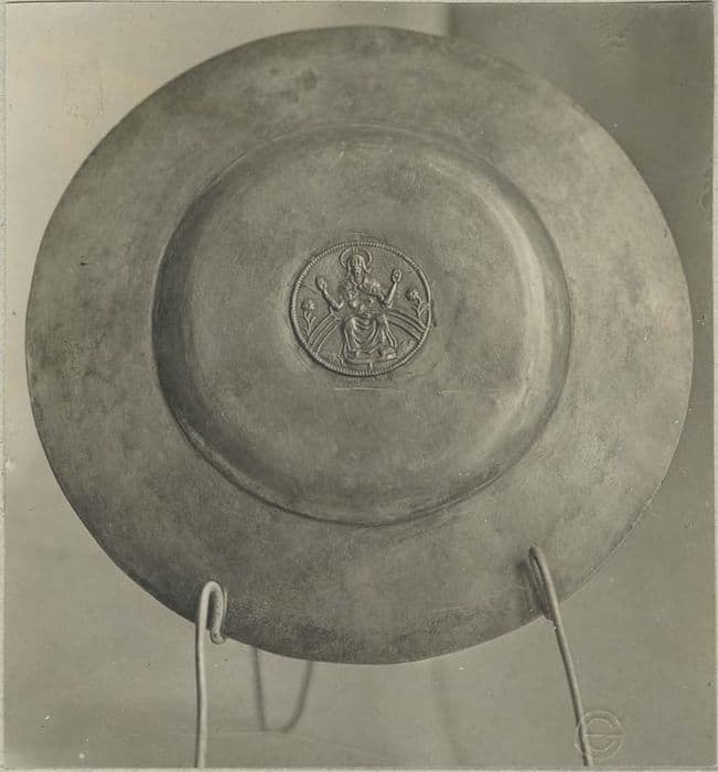 patène : Le Christ assis sur l'arc-en-ciel et nimbé, assis sur son trône et bénissant des 2 mains
