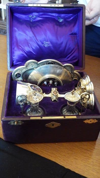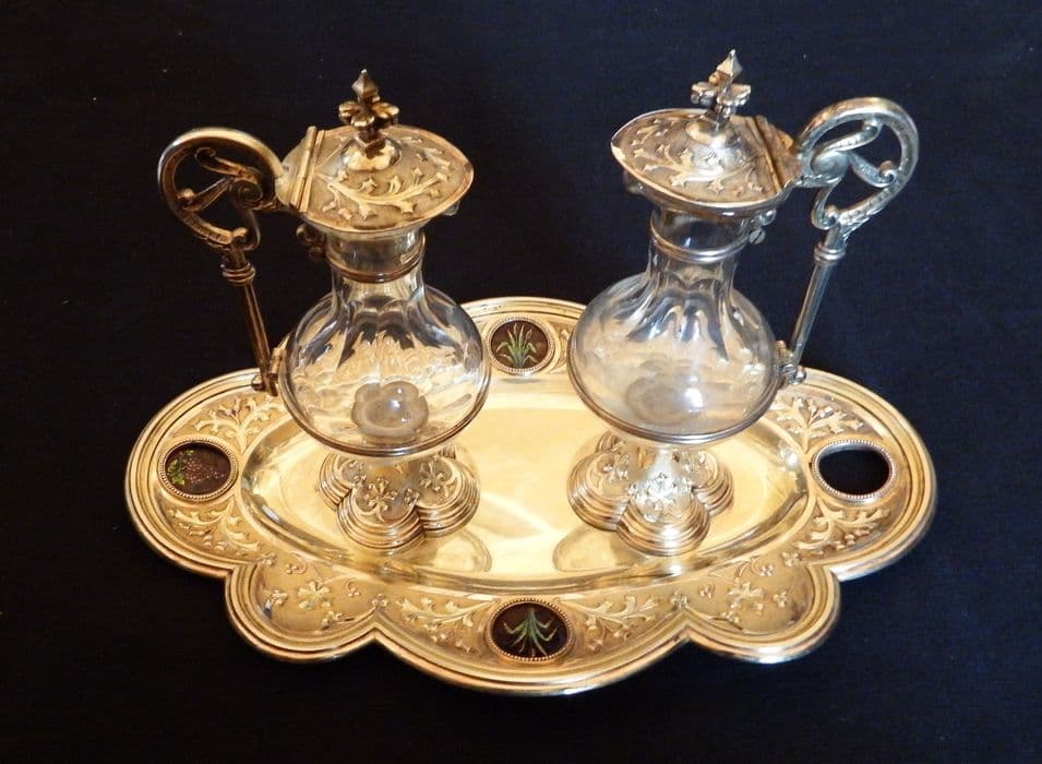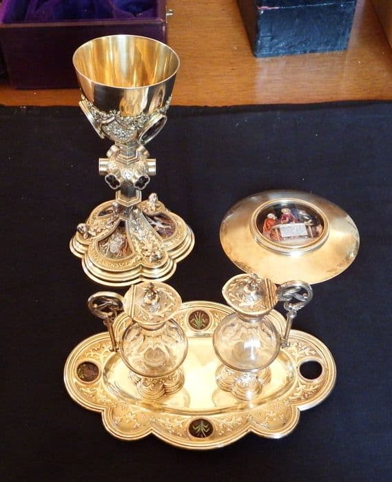 chapelle (calice, patène, burettes, bassin à burettes) aux armes de Monseigneur Bernadou, cardinal, archevêque de Sens, évêque d'Auxerre