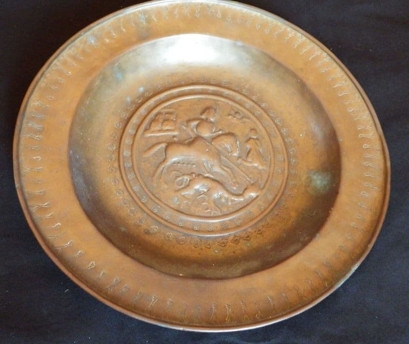 plat à quêter : Saint Georges terrassant le dragon et délivrant une jeune fille