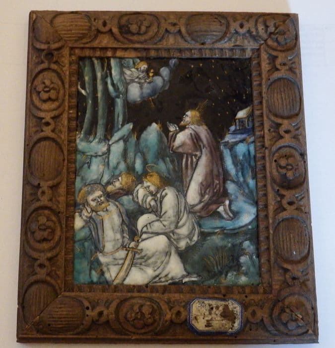 plaque décorative : Le Christ auquel un ange présente le calice pendant que les apôtres dorment