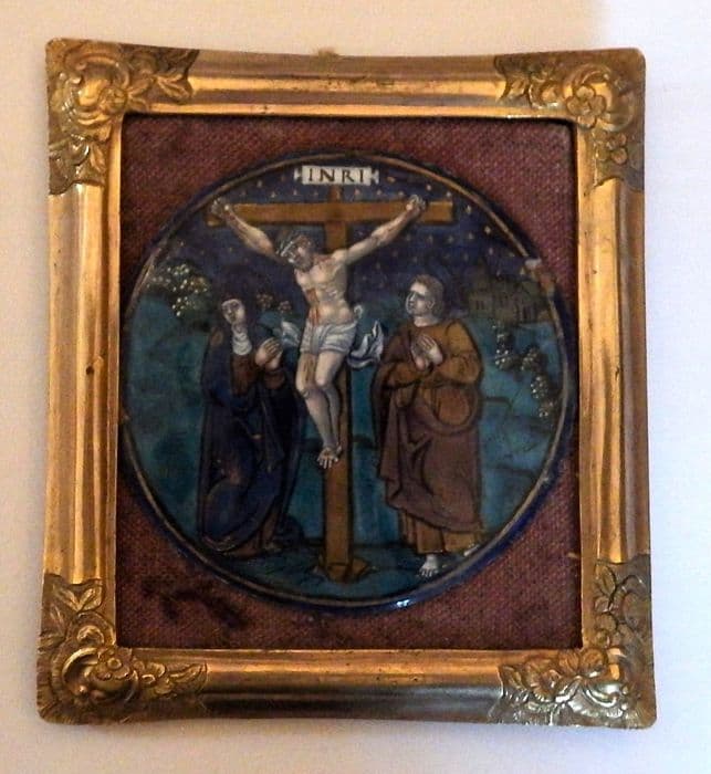 plaque décorative : Le Christ en croix entre la Vierge et saint Jean