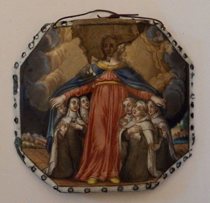 plaque décorative : Sainte Thérèse abritant des religieux sous son manteau