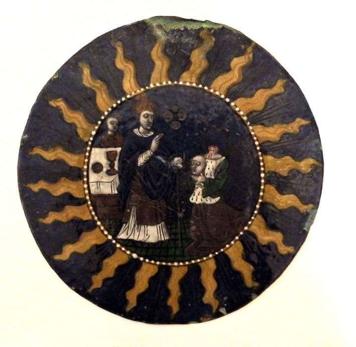 plaque décorative : Sainte Valérie offrant sa tête à saint Martial