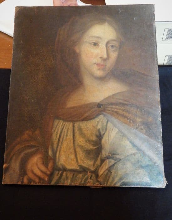 Inv. 268. Peintures, sur toiles, sur verre, sur bois et sur cuivre : peinture. Peinture sur toile renfermée dans un cadre ancien de bois doré, et représentant une vierge et martyre.