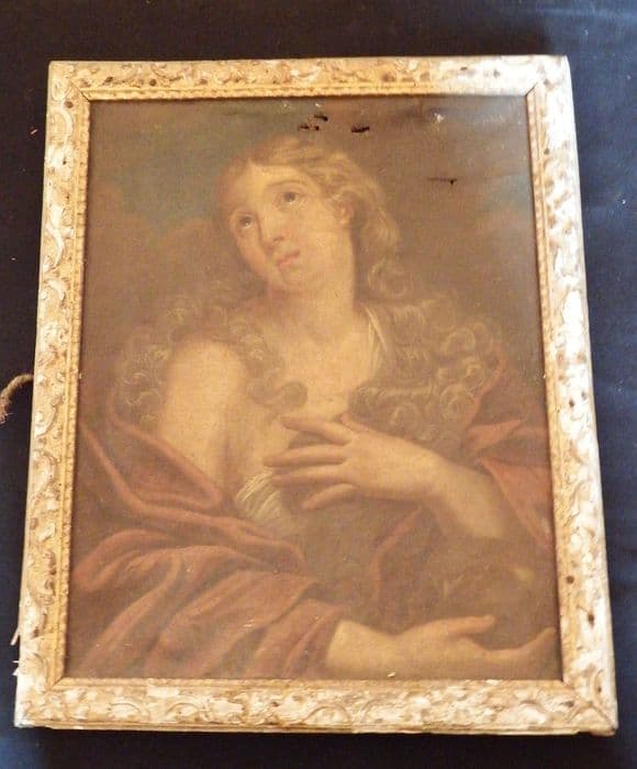 Inv. 274. Peintures, sur toiles, sur verre, sur bois et sur cuivre : peinture. Peinture sur toile, enfermée dans un cadre en bois doré et sculpté, représentant la Madeleine pénitente.