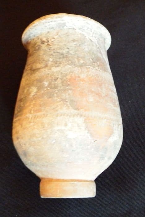 Inv. 313. Faïences, poteries, verreries : vase. Vase en terre cuite de l'époque gallo-romaine, forme haute, avec deux cordons de guillochures.