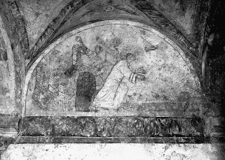 crypte, bas-côté nord, 1ère travée du mur septentrional, sous le tympan formé par la lunette de la voûte