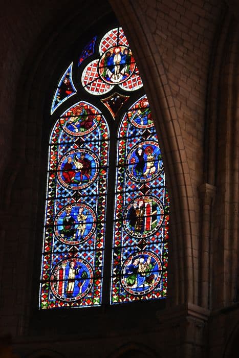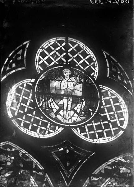 Verrière à 2 lancettes contenant chacune 4 médaillons, surmontées d'une rosace.