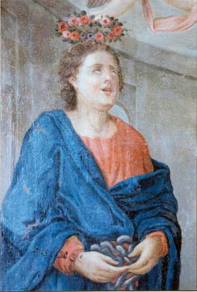 Vestige d'une poutre de gloire. Seule statue en bois de l'église.
