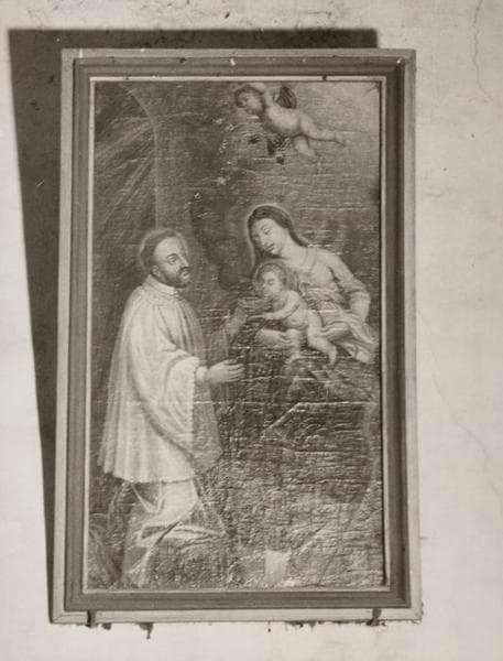 tableau : Saint au pied de la Vierge à l'Enfant