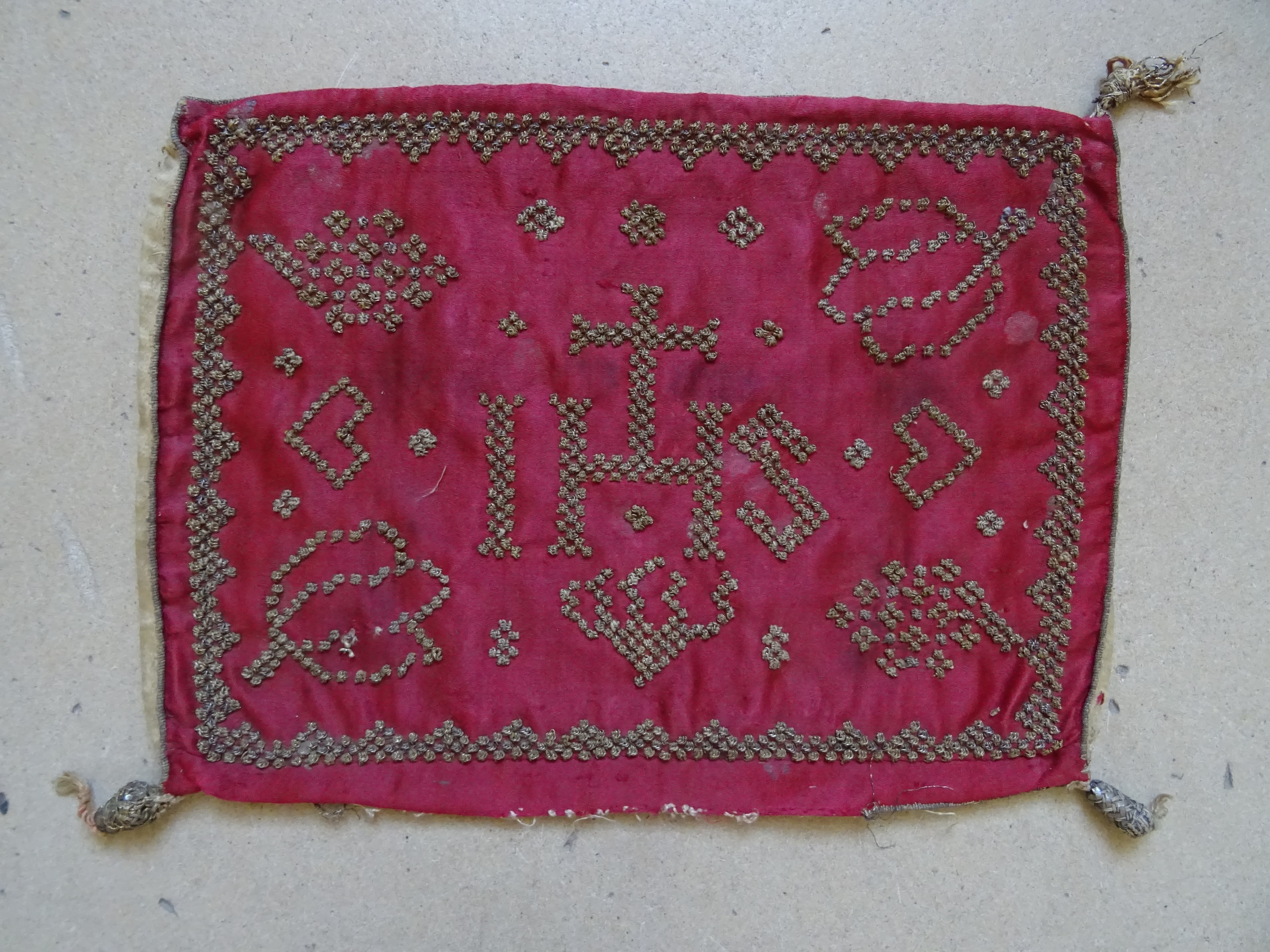 soie : brodé ; fils métal ; toile