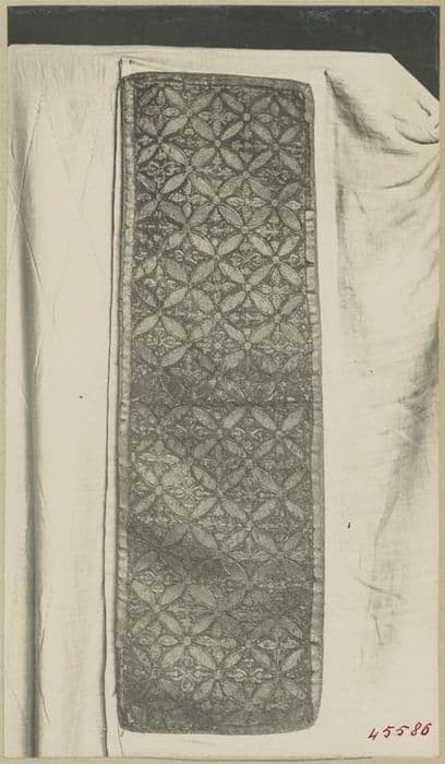 L'aube, faite de grandes pièces de lin écru, est bordée aux poignets de soies façonnées ; le bas de l'aube est garni devant et derrière de larges bandes de samit de soie brodée de fils métalliques formant un décor de cercles. Deux soufflets en toile de lin donnent de l'ampleur de chaque côté de l'aube. L'encolure est arrondie et fermée d'un bouton de soie façonnée.